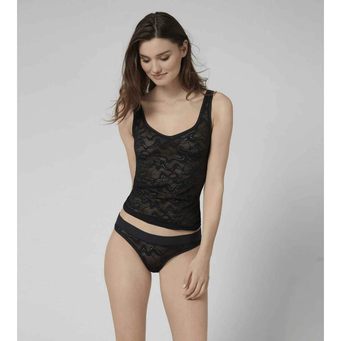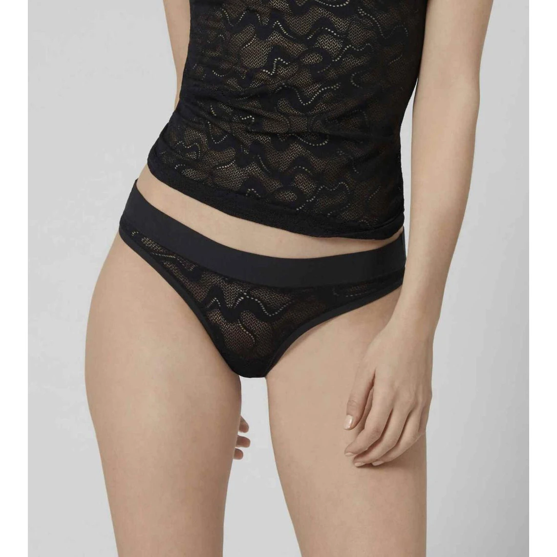 Dévoilez votre féminité dans le confort de ce Slip taille basse Noir Sloggi de la collection GO Allround Lace, il séduit pour sa dentelle jacquard raffinée et sa large ceinture.